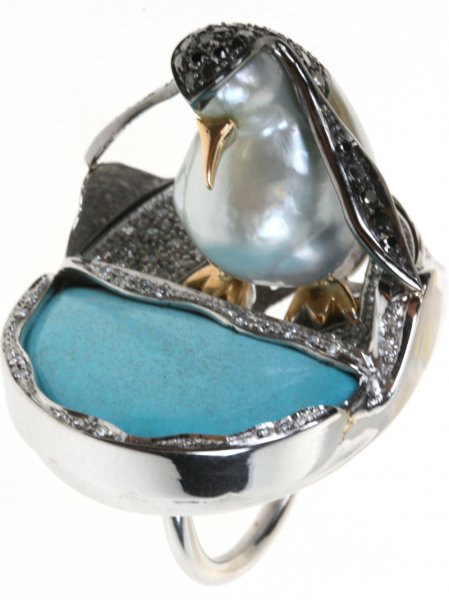 Pingu Der Entschluss ist gefasst. Der Weg zum Ziel führt bergaufwärts, ist aber festgelegt und die Umkehr ist schwierig. Pingu beobachtet den Riss im Eis und sieht das Wasser, das den Wegweiser zu einem neuen Leben, zu neuen Welten darstellt. Pingu zögert, ist sich aber bewusst, dass der Entschluss mit Überzeugung gefasst werden muss und zwar schnell, ansonsten wird sich das Eis um den Riss wieder schließen und viel Zeit vergehen, bis sich wieder andere Wege offenbaren. Der Ring ist die diesem Gedanken zu Grunde liegende Vorstellung, die mich früher zwischen Ängsten und Unsicherheiten beschäftigte. Pingu ist wie das Konzept, das die Bedeutung in sich birgt; er ist bestimmt ein anspruchvoller Ring.