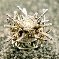 Shangai Ring mit einem Diamant in der Mitte, der aus der Inspiration des altertümlichen Spiels entstanden ist. „Shanghai” ist ein altes chinesisches Spiel, das Geschicklichkeit und Geduld verlangt. Man spielt auf einem bedeckten Tisch und verwendet 31 bunte und ca. 17 cm lange Stäbchen. Die Stäbchen lässt man fächerartig aus der Senkrechten auf den Tisch fallen. Der Spieler muss jeweils ein Stäbchen nach dem anderen entfernen, ohne die anderen zu bewegen. Ring mit einem Diamant in der Mitte, der aus der Inspiration des altertümlichen Spiels entstanden ist. „Shanghai” ist ein altes chinesisches Spiel, das Geschicklichkeit und Geduld verlangt. Man spielt auf einem bedeckten Tisch und verwendet 31 bunte und ca. 17 cm lange Stäbchen. Die Stäbchen lässt man fächerartig aus der Senkrechten auf den Tisch fallen. Der Spieler muss jeweils ein Stäbchen nach dem anderen entfernen, ohne die anderen zu bewegen. |